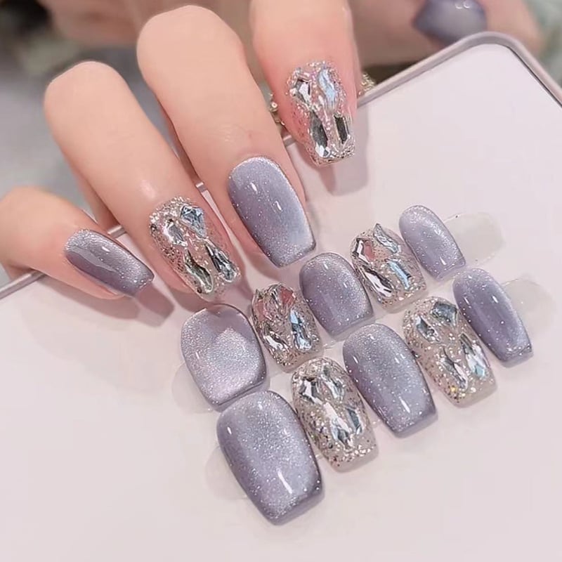 【人気商品】オーロラパープル×立体ビジューのニュアンスネイルチップ〔yn011〕