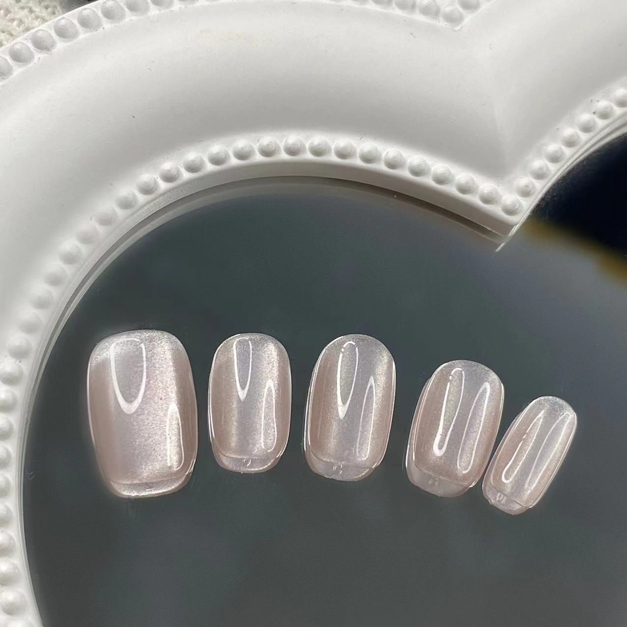シアーベージュ×オーロラパールの上品ワンカラーネイルチップ
